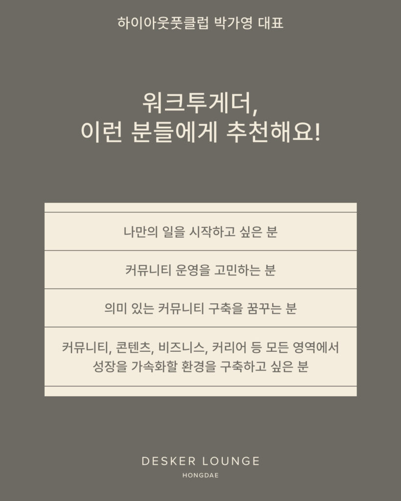 ⁕ 행사 당일, 오전 10시부터 데스커 라운지 홍대를 이용할 수 있습니다.