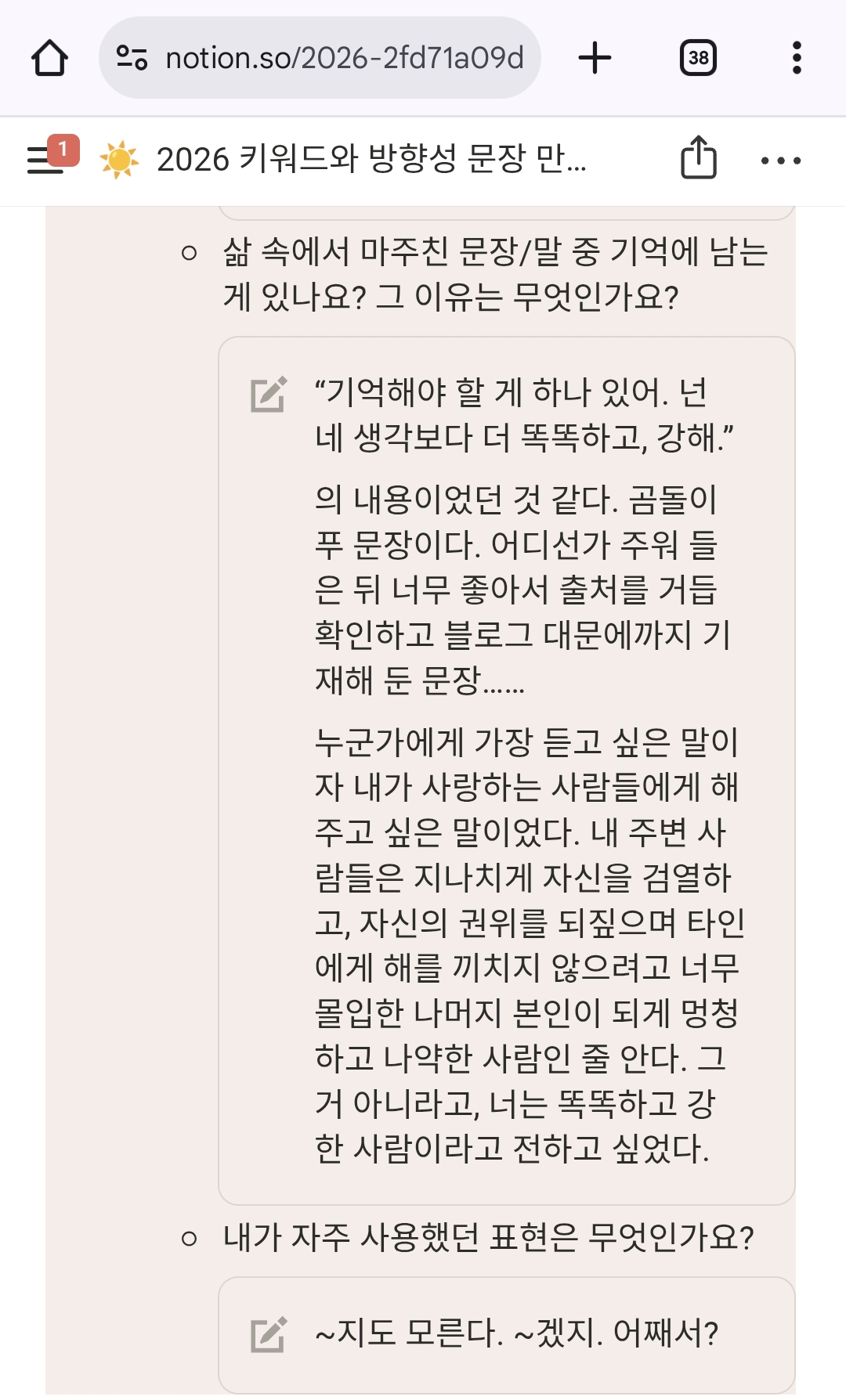 사실 하루 안에 다 할 수 있겠지~라는 우매한 마음으로 들어갔다가 깊은 질문들에 당황해서 하나씩 천천히 해나가고 있습니다…^^ 파이팅