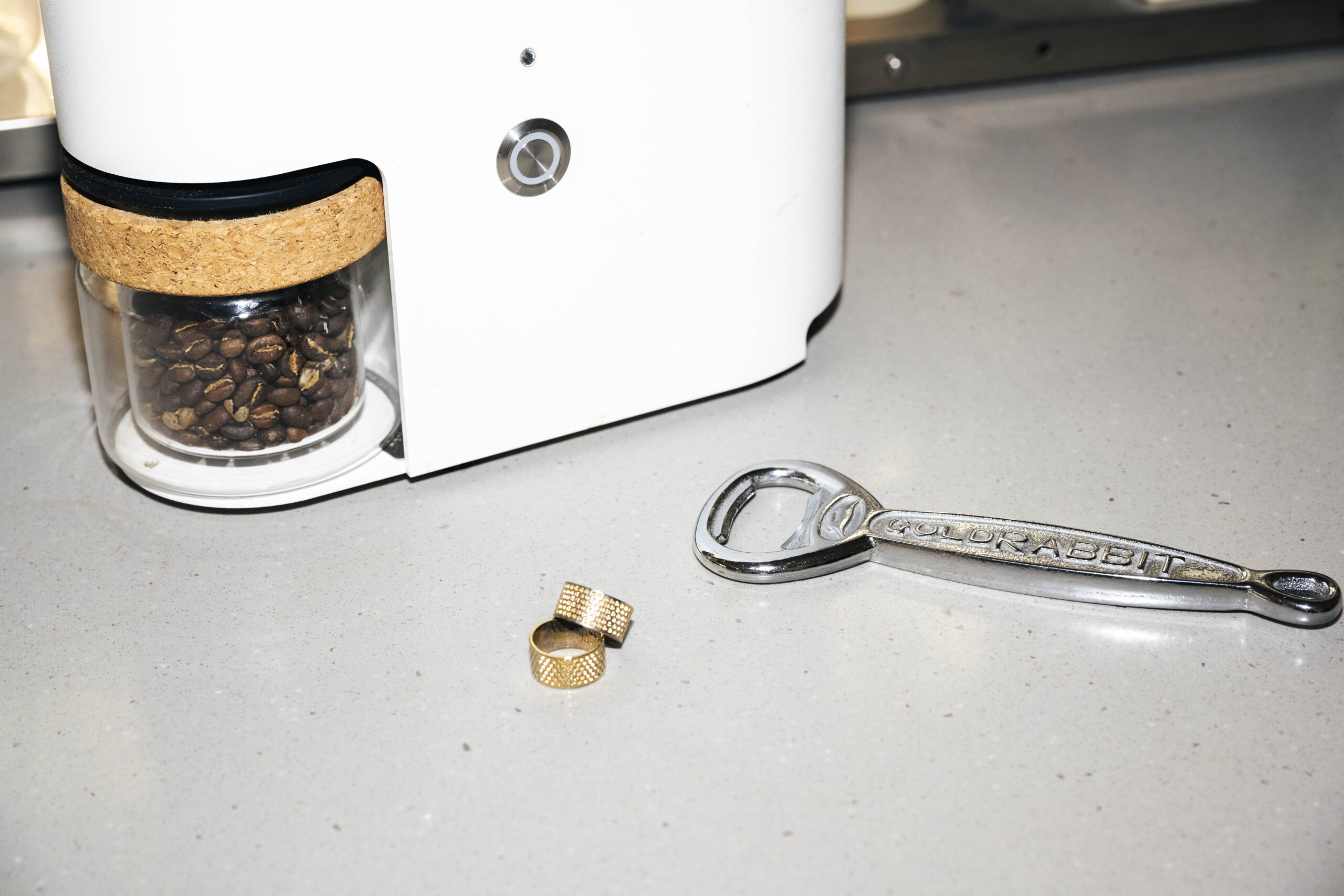수연 얼핏 반지처럼 보이는 이 골무는 전통 바느질 기법인 ‘누비’ 작업에 사용하는 도구다. 세 번째 손가락에 끼워 바늘을 미는 역할을 한다. 현재 나는 무형 문화재 전승 교육사 스승님에게 이수자 교육을 받는 전수생으로, 매일 조금씩 쪼갠 시간을 바느질에 할애한다. 목표가 있기에 늘 약간의 부담을 안고 작업대에 앉지만, 골무를 끼고 바늘을 잡는 순간만큼은 휴식이자 힐링, 때로는 고요한 명상의 시간이 된다. 나이가 들어도 누비 작업에 오랫동안 매진하고 싶다.