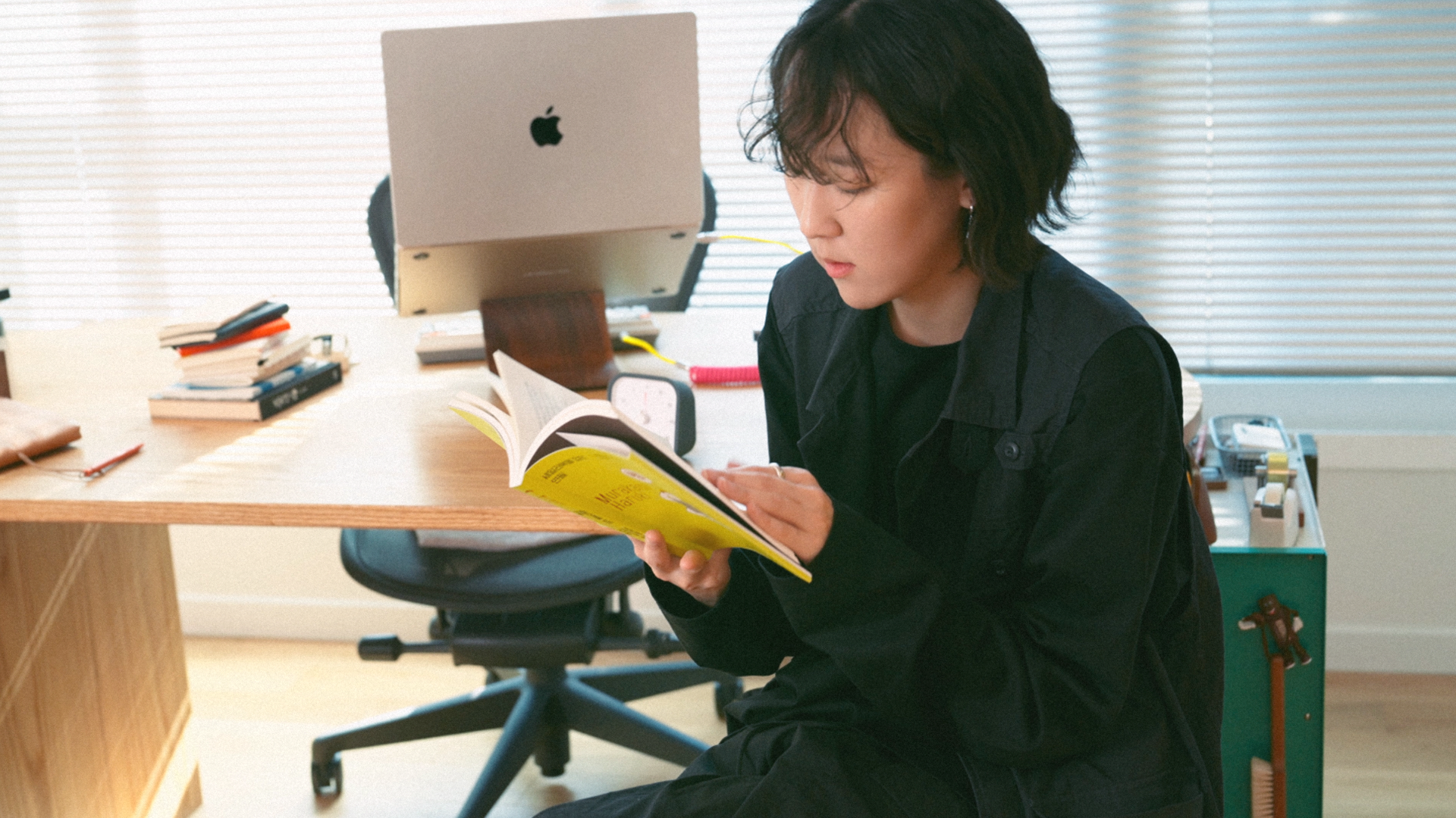 “계속 최적화를 하고 있어서 방법은 꾸준히 달라지고 있어요. 처음에는 인터넷 서핑에 빠져 있어서 컴퓨터를 아예 끄고 노트에 글을 쓰거나 그림을 그렸다면, 요즘에는 릴스나 숏츠 같은 빠른 호흡의 영상을 보지 않기 위해 스마트폰을 비행 모드로 돌려 놓고 있어요.” 그는 노와이파이 실천을 돕는 도구들도 적극 활용한다. 그중 하나가 스톨프Stolp라는 박스다. 스마트폰을 넣으면 자동으로 비행 모드가 작동해, 모든 알림이 오지 않는다. 그 외에도 외부의 소리를 차단해 줄 이어플러그, 이동 중에도 자유롭게 책을 볼 수 있는 이북 리더기 등을 활용 중이다.