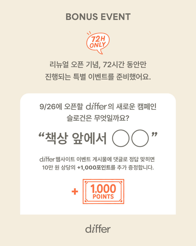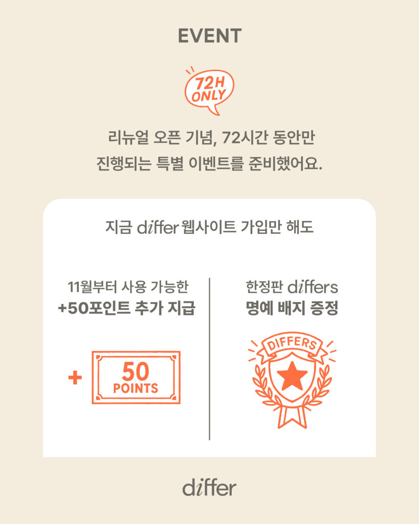 differ의 새로운 출발을 축하하며 특별히 준비한 이벤트 기회를 꼭 잡아보세요!