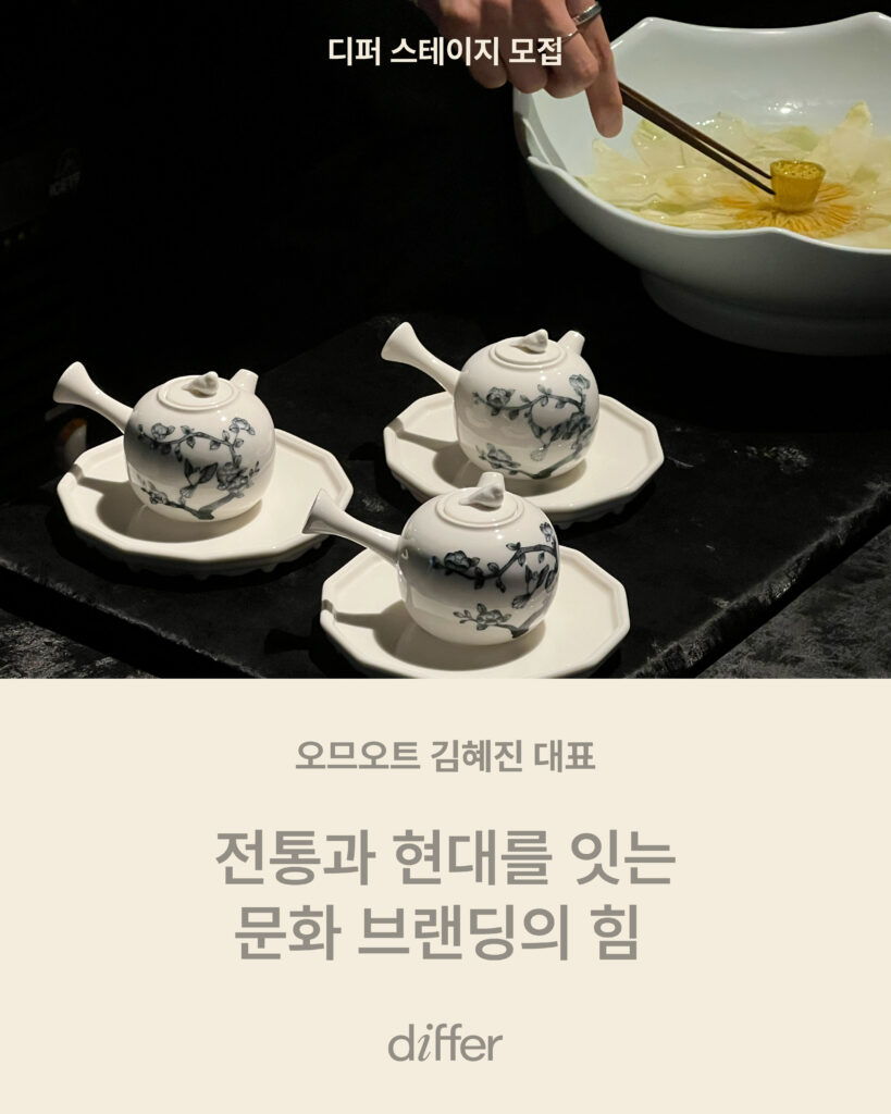 차와 자기, 음식의 스토리를 함께 풀어내는 오므오트라는 브랜드를 늘 궁금해했어요. 전통과 현대가 어우러지는 이 브랜드를 어떻게 기획하게 됐는지, 지금의 오므오트가 되기까지 어떤 고민들이 있었는지 듣고싶습니다. 그리고 디퍼 스테이지에서 만날 수 있어서 더 기뻐요!