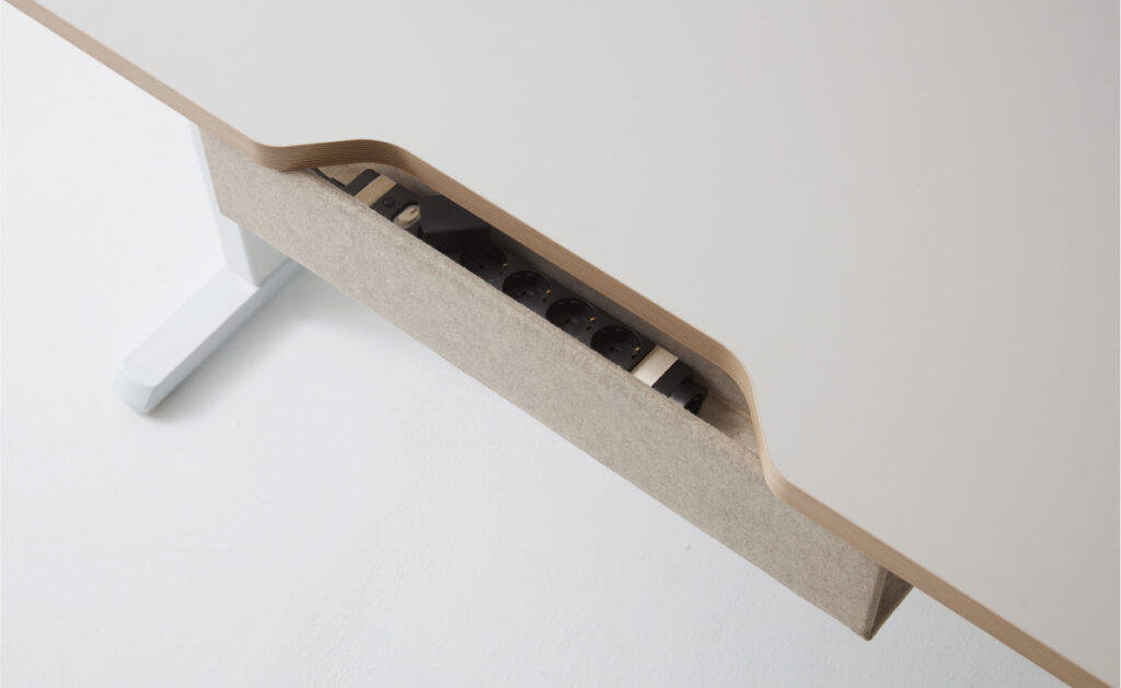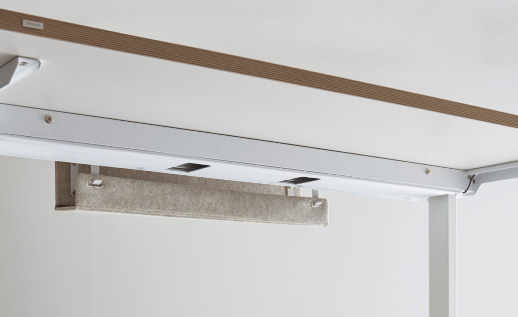 ㄷ자 형태의 배선트레이는 접거나 펼칠 수 있는 구조로 설계되어 상판 바닥면에