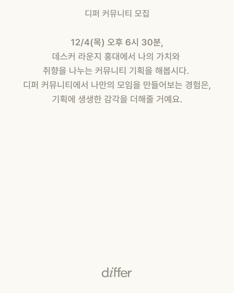 11월 differ Community 주제는 ‘가치와 취향을 나누는 커뮤니티 기획하기’ 입니다.