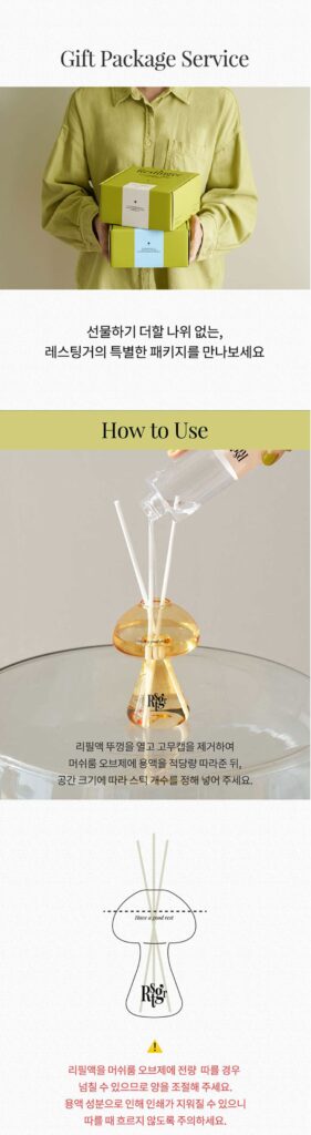 공간 곳곳에 레스팅거가 비치되어 있으니, 공간을 채우는 특별한 향을 경험해 보세요.