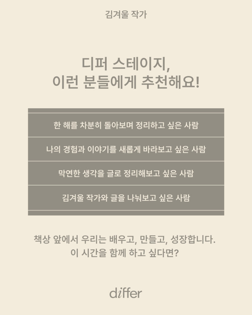 이번 디퍼 스테이지는 김겨울 작가와 함께