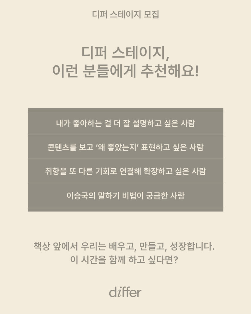 ‘디퍼 스테이지’는 책상을 무대로 깊이 있는 배움과 연결을 만드는 오프라인 워크숍입니다.
