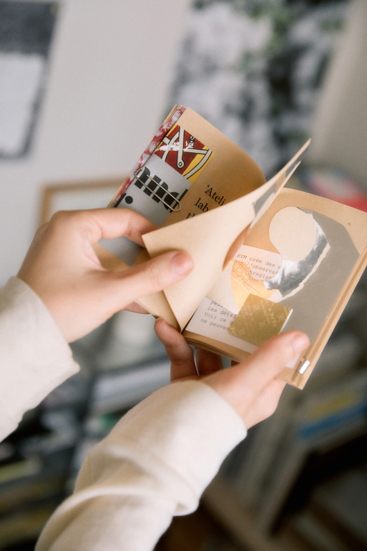 노트에 여러 가지를 붙였다 뗐다 하면서 하나의 큰 그림을 찾아가요. 그러면서 각자의 수집품이 가지고 있던 이야기가 하나로 합쳐지기도 하고, 나만의 스토리텔링이 되죠. 모은 물건들을 한참 뒤에 다시 보면 새로운 영감이 돼요. 물건을 배치할 때는 ‘감각적으로 보이는가’가 가장 중요해요. 균형을 맞추고 어떤 부분을 더하고 어떤 부분은 날아가고 하면서 제가 원하는 느낌을 만들어가는 거죠. 대학 때 책을 만드는 과정에 대한 수업을 청강한 적 있는데, 그 수업에서 책도 오브제라는 걸 배운 게 큰 기점이 되었어요. 책은 평면이 아니라 만질 수 있는 물건이고, 손으로 만져지는 질감이나 펼쳤을 때의 곡면에 따라 보이는 것, 판형 등이 모두 책에 대한 경험이 될 수 있단 걸 알게 된 거죠.
