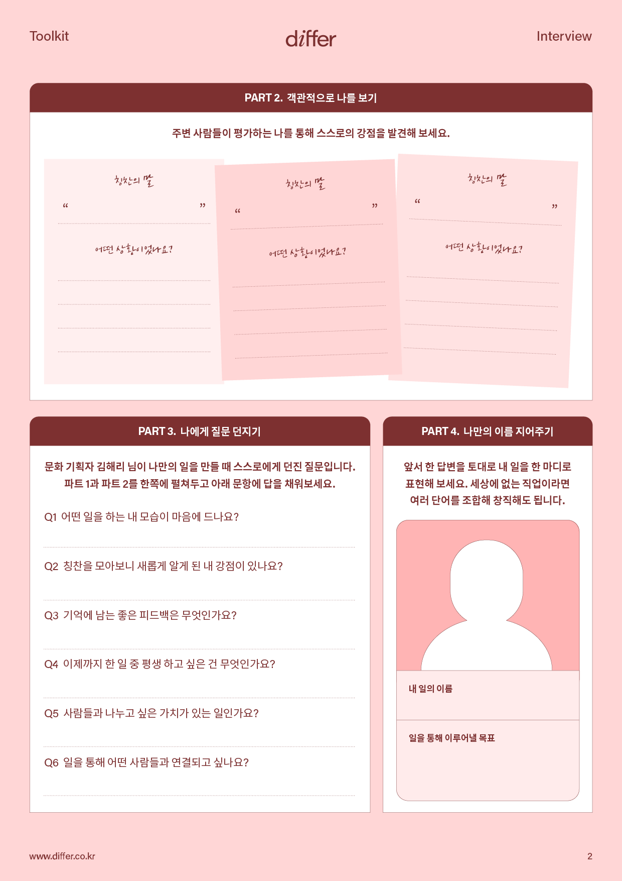 열정으로 가득한 매일을 만들고 싶나요? 이미 하고 있거나 앞으로 해보고 싶은 일에 이름을 지어주세요. 주체적으로 나의 일을 새롭게 명명하는 것만으로도 삶의 방향성이 한층 또렷해진답니다. 목표가 확실하면 하루하루를 대하는 태도도 자연스럽게 달라져요.