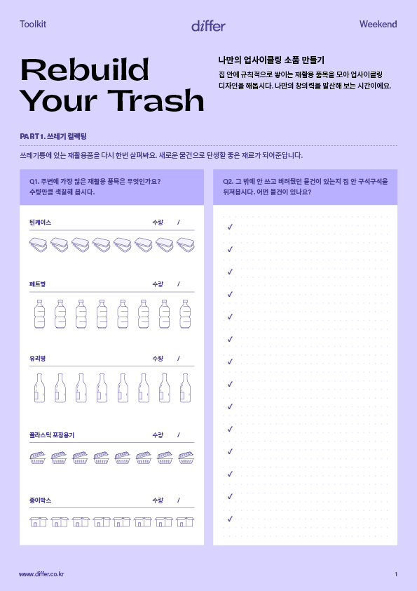 집에 산더미처럼 쌓인 쓰레기를 새로운 소품으로 만들어봅시다. 쓰레기 양은 줄이고, 나만의 특별한 인테리어 소품으로 집 안을 꾸미는 거죠. 우선은 평소에 쓰레기 분리수거를 잘하는 것부터 시작해 볼까요?
