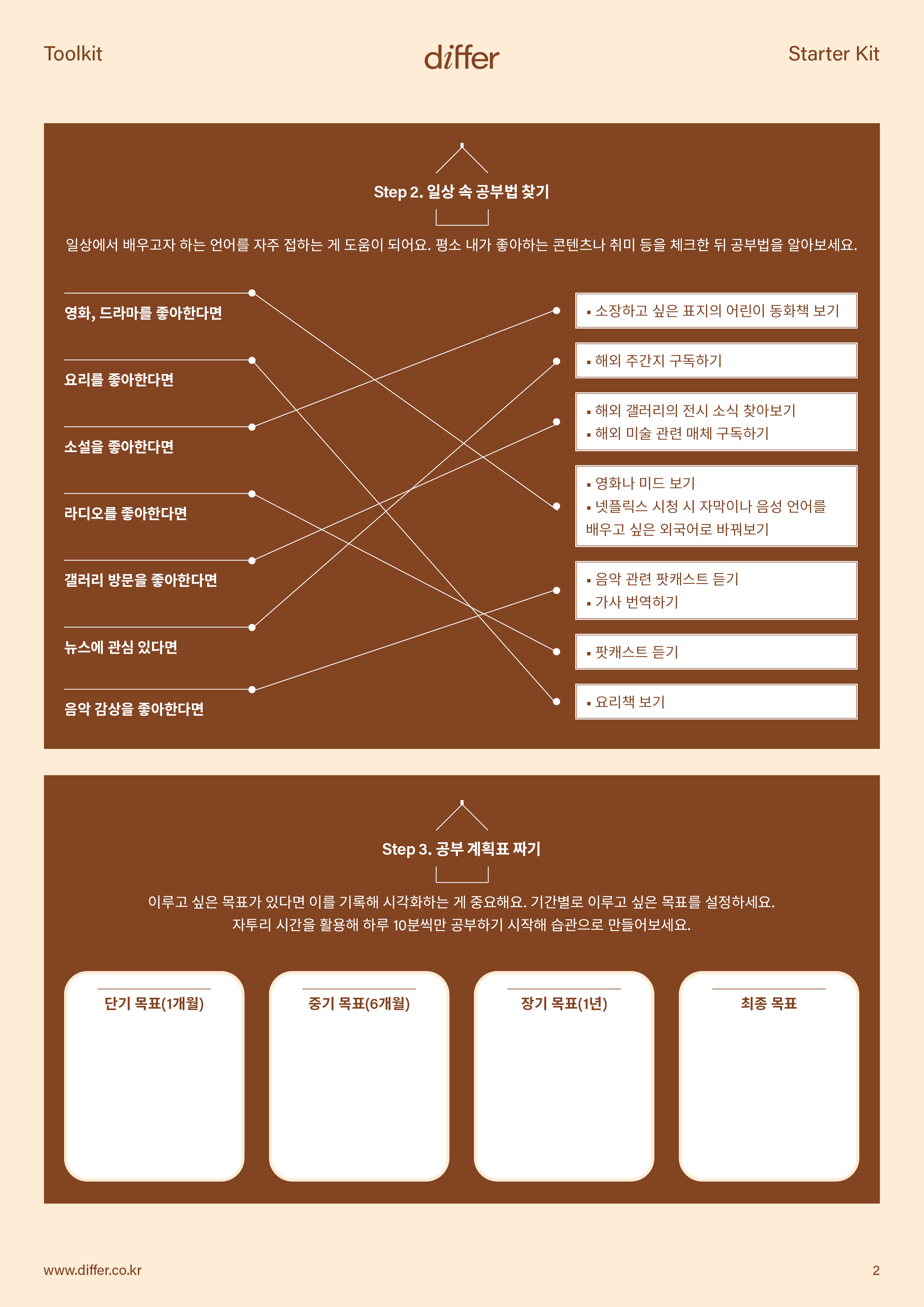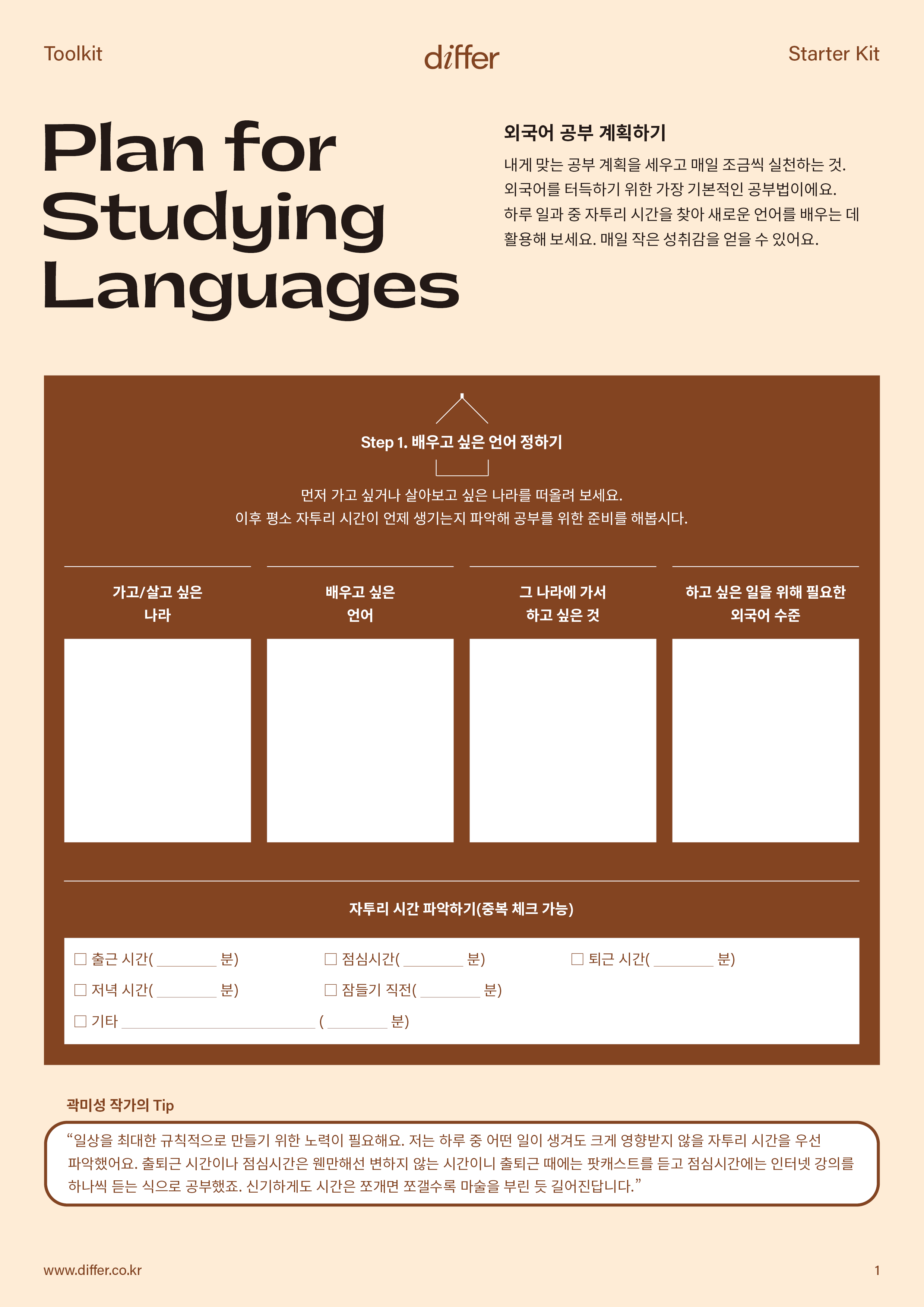 새로운 언어를 구사할 수 있다는 건 세상을 살아가는 도구 하나를 더 얻는 것과 같아요. 그동안 수없이 도전했다가 포기했던 외국어가 있다면 이번 기회에 다시 시작해 보세요. 공부에 나침반이 되어줄 계획표를 함께 세워봐요.